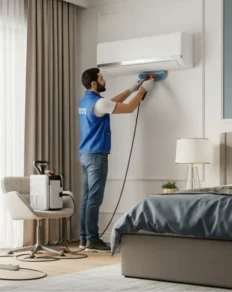 تشمل الخدمة تنظيف الفلاتر، إزالة الغبار المتراكم، وتنظيف الوحدة الداخلية للمكيف بطريقة آمنة تساعد على تحسين التبريد وجودة الهواء. يتم العمل بهدوء واحترام للمنزل أو المكتب، مع الالتزام بالوقت المتفق عليه.